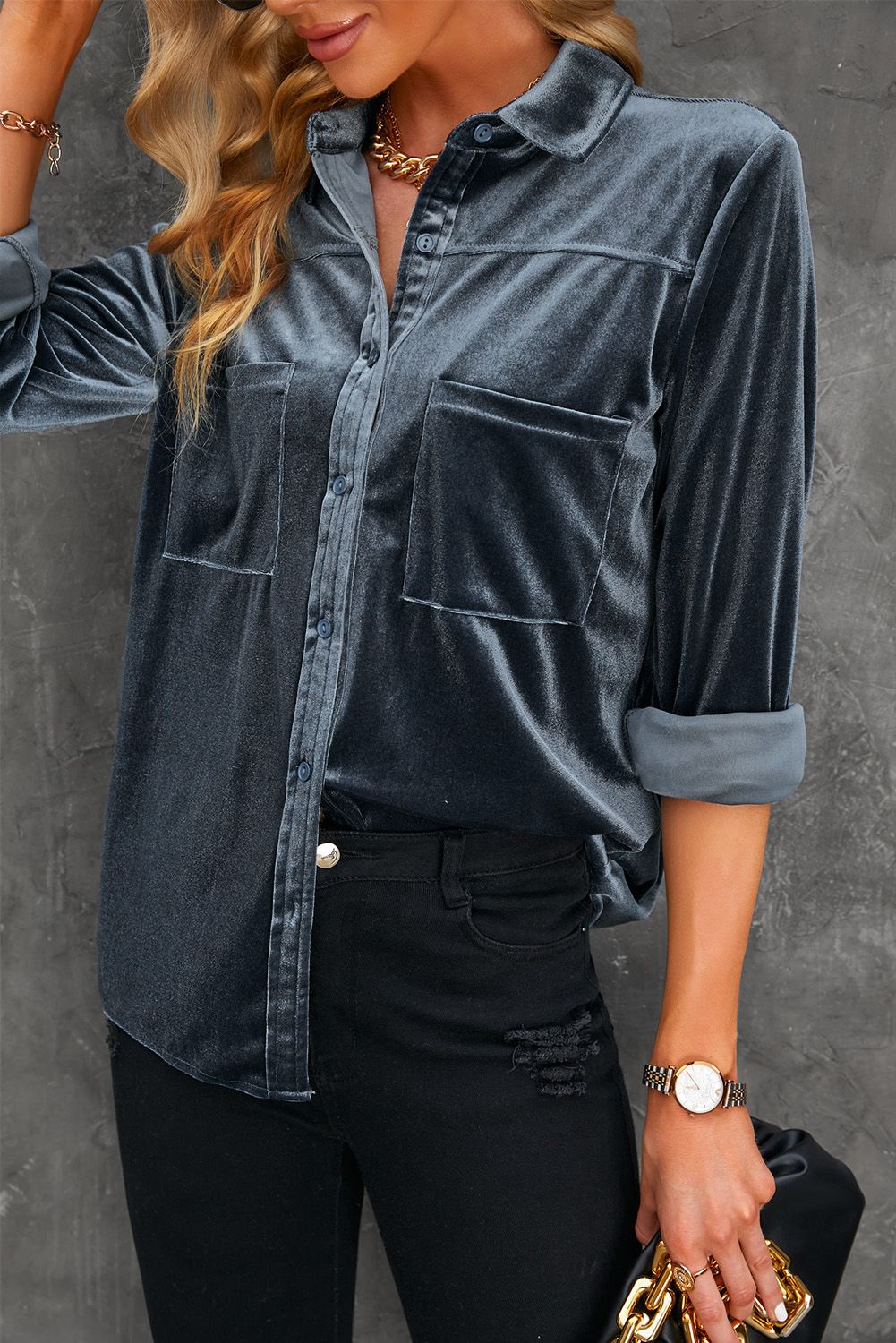 Apricot Retro Velvet Pocket Long Sleeve Shirt
