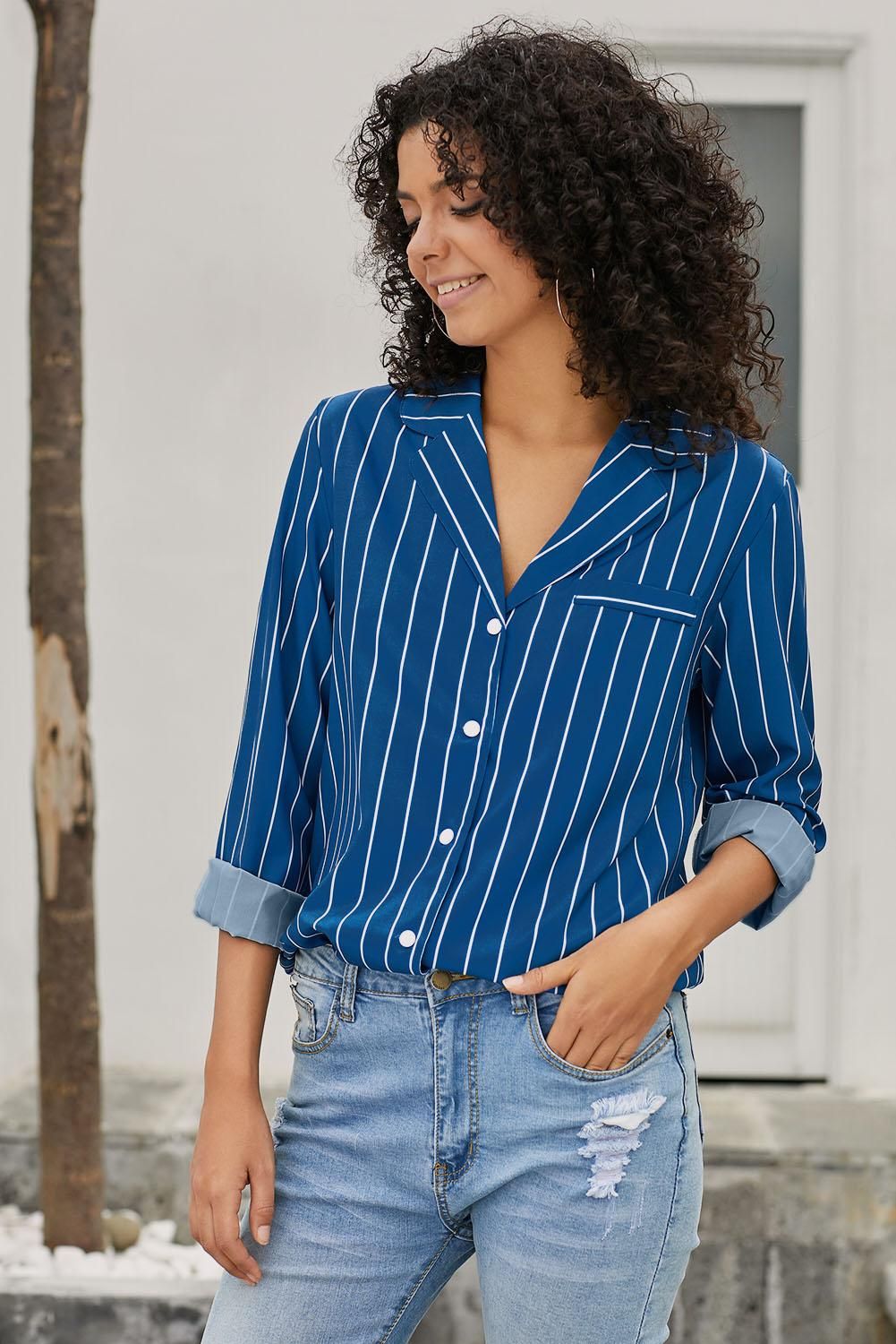Royal Blue Striped Button Front Shirt