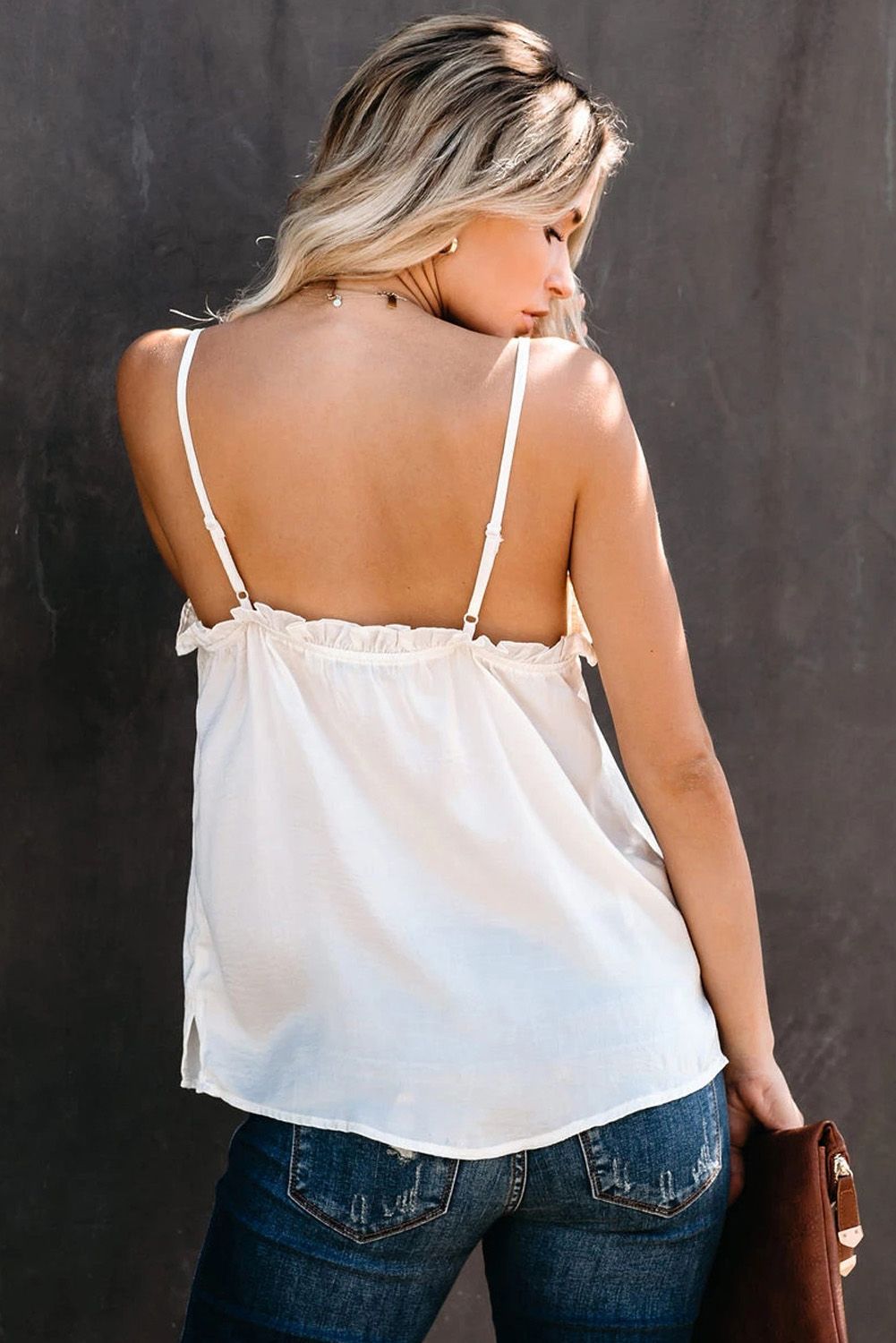 Apricot Ruffle Detail Spaghetti Straps Tank