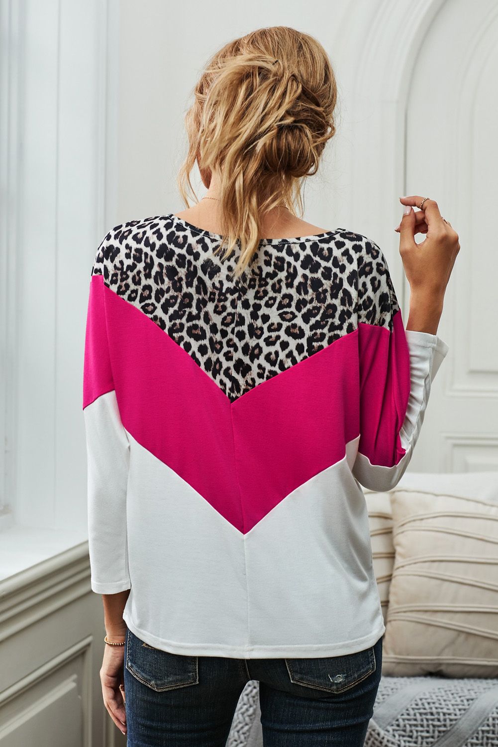 Leopard Rose White Splicing Blouse