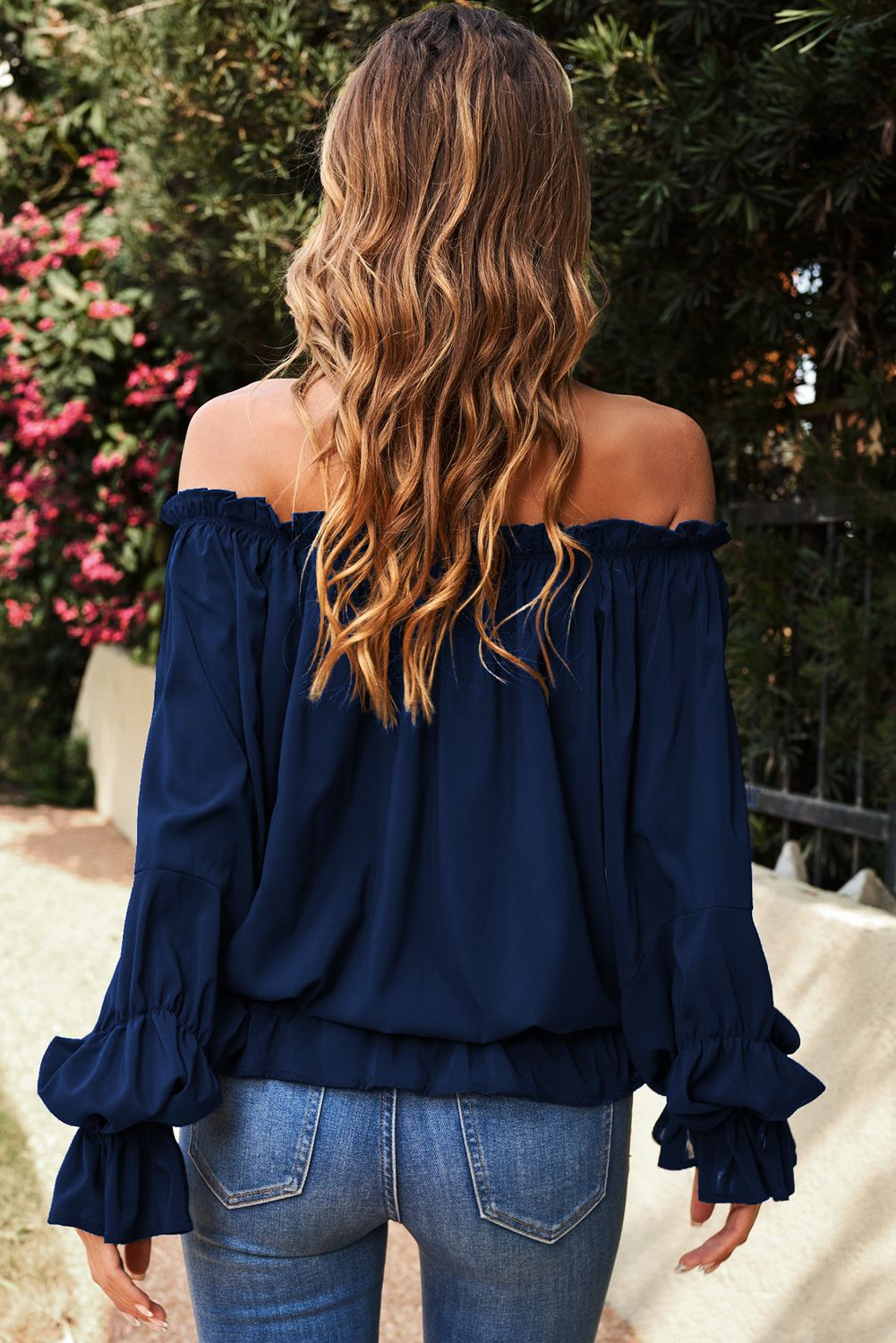 Our Off Shoulder Ruffled Puff Sleeve Blouse is effortlessly adorable